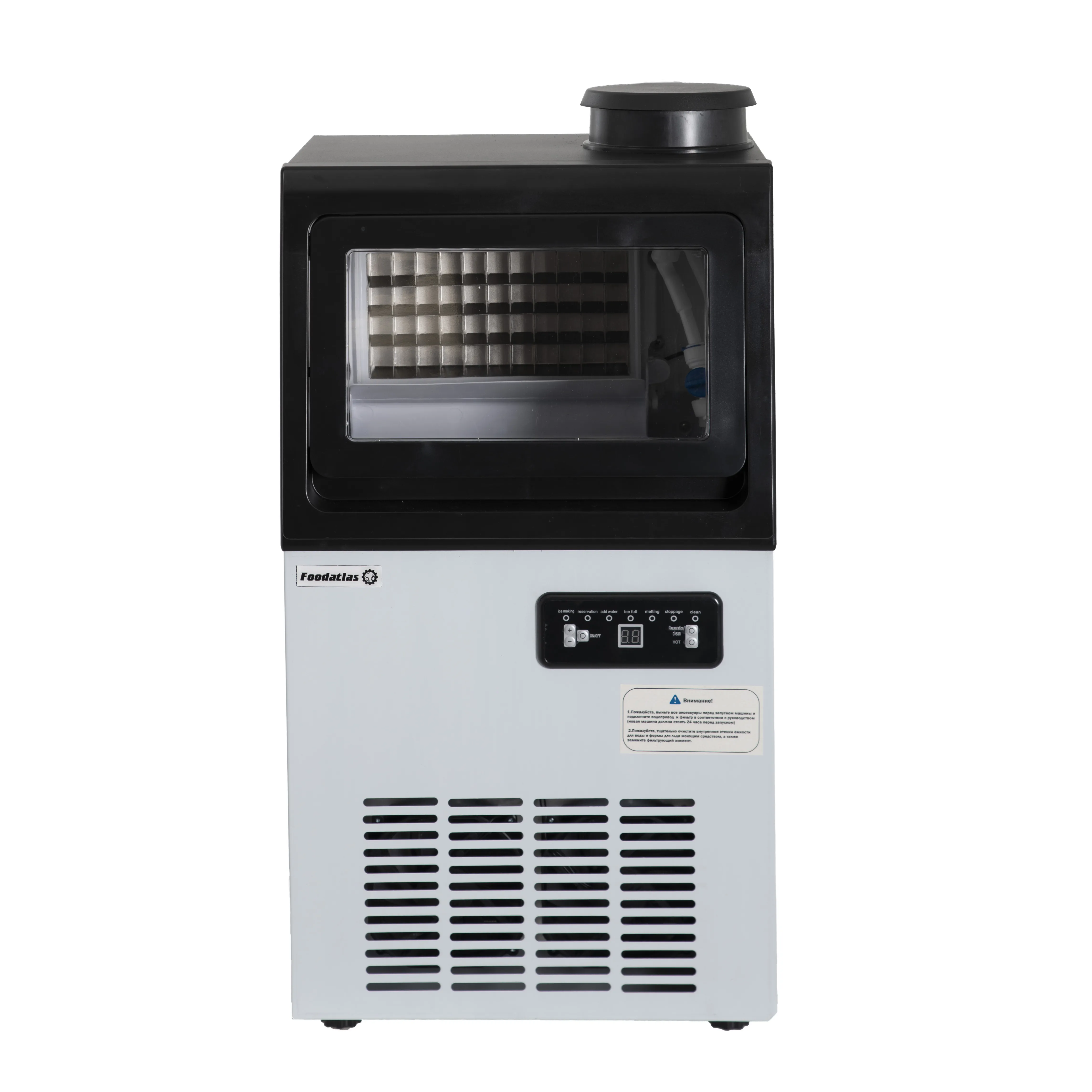 - Тип льда: кубиковый лед, который подходит для напитков, коктейлей и охлаждения продуктов